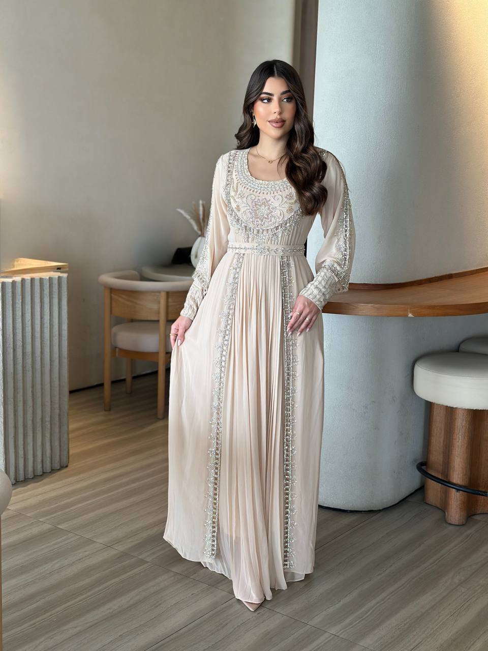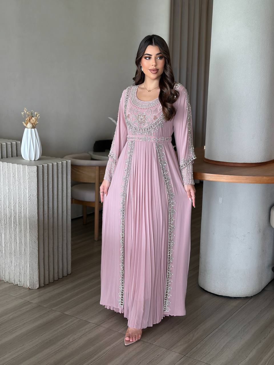 فستان خام شيفون شغل شك يدوي مع فصوص-d2