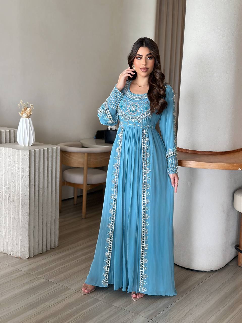 كن أول من يقيم “فستان خام شيفون شغل شك يدوي مع فصوص-d2”